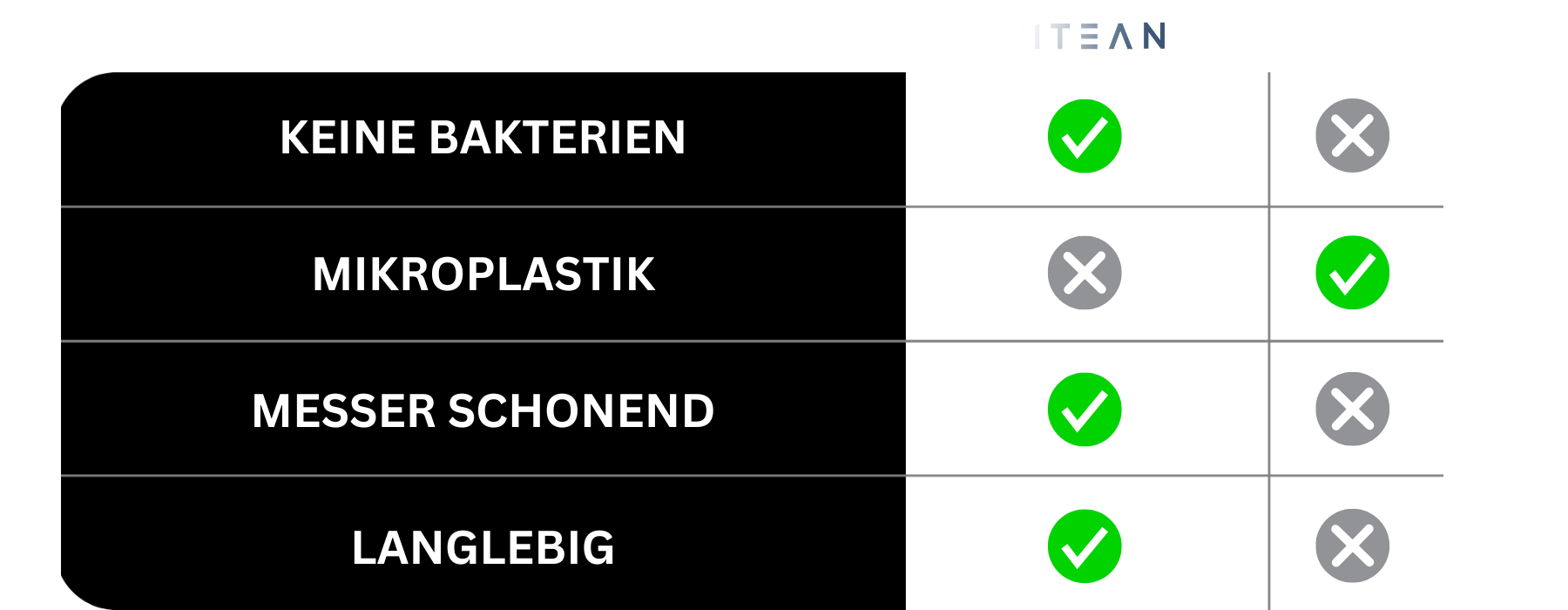 Das Titanboard bekommt Kratzer wie jedes andere Schneidebrett, aber, diese Kratzer sind oberflächlich und beeinträchtigen weder Hygiene noch Funktionalität. Zudem schneidest du bei Edelstahl kein Mikroplastik oder unerwünschte Stoffe ins Essen, was es zu einer gesünderen und langlebigeren Alternative macht.