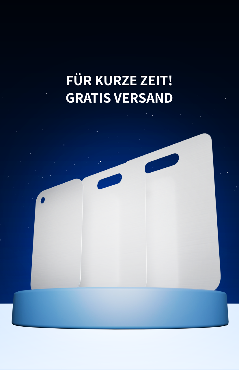 Kunststoffbretter geben bei jedem Schnitt Mikroplastik in die Nahrung ab, jeder Mensch nimmt in der Schweiz bis zu 5 Gramm pro Woche auf, etwa so viel wie eine Kreditkarte. Mit unserem Titeanboard vermeiden Sie diese Belastung. Wähle ein Schneidbrett, das den Unterschied macht!